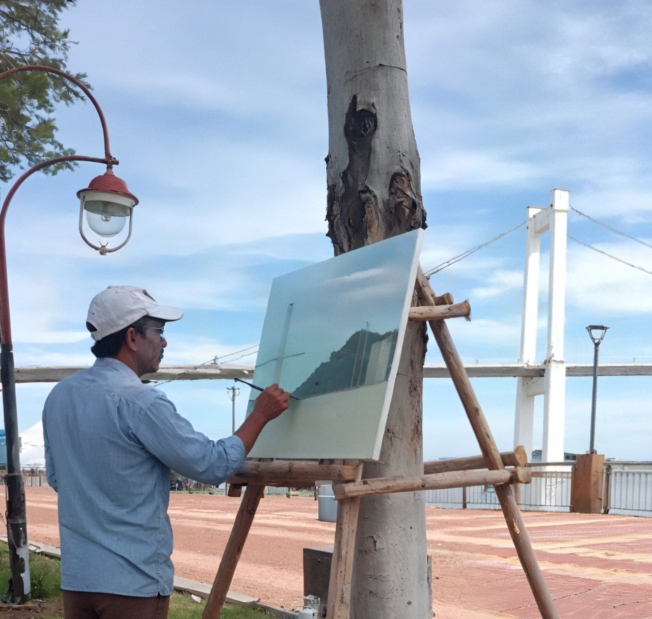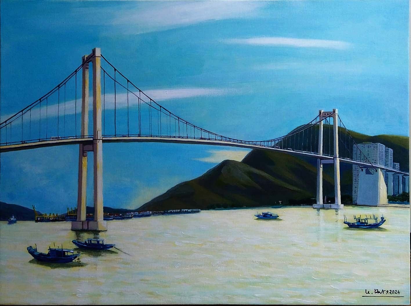 Bức tranh “Chung sức chống dịch Covid-19” của họa sĩ Lê Tấn Đạt thể hiện tinh thần đoàn kết và sự hy sinh thầm lặng của lực lượng tuyến đầu trong đại dịch. Tác phẩm là lời tri ân và thông điệp khích lệ, lan tỏa niềm tin vào một cuộc sống bình yên sau bão dịch.